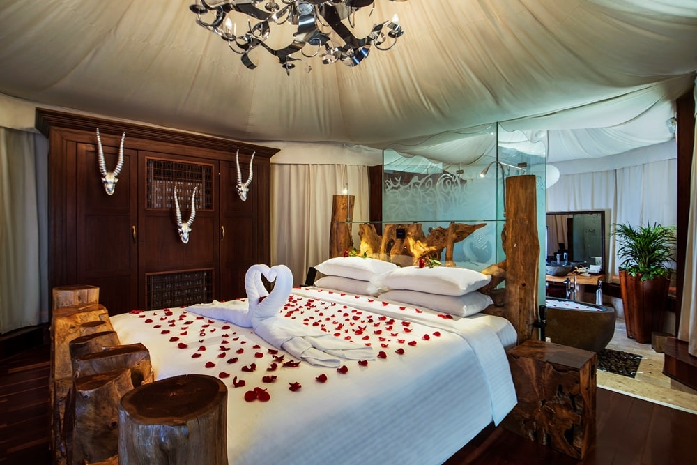 At Telal Resort, there are 7 Heritage Rooms, 3 Heritage Two Bedroom Suites and 14 tented style private luxury villas
